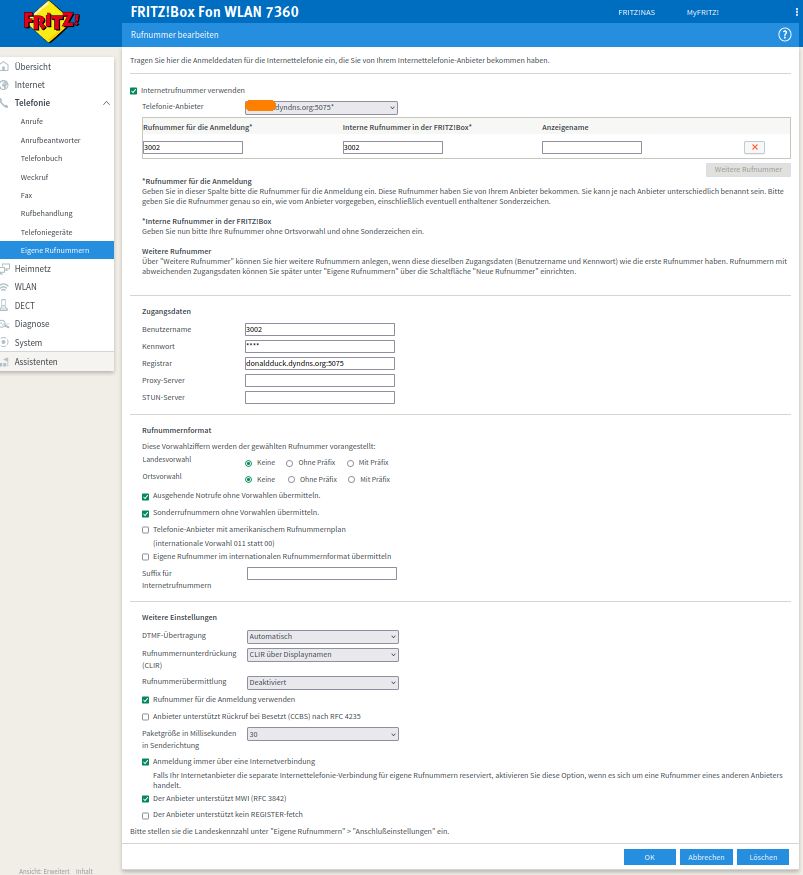 Komme nicht auf die Idee dieselbe Nummer zum Beispiel gleichzeitig auf mehreren Endgeräten (z.B. auf einem Softphone und der FritzBox zu registrieren. Es treten dann unerwartete Registrierungsfehler auf und du weißt nie welches Endgerät klingeln wird.